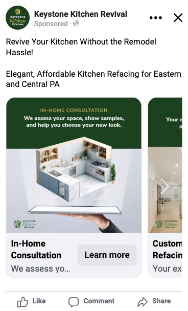 Keystone Kitchen Revival faced a classic challenge: breaking into a saturated market with zero brand awareness. In this case, they were focused on the home renovation and home services industry, where they needed to establish themselves as a competitor.
