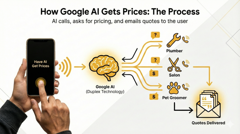 A homeowner types “plumber near me” into Google. Instead of calling around, they tap a button that reads “Have AI get prices.”